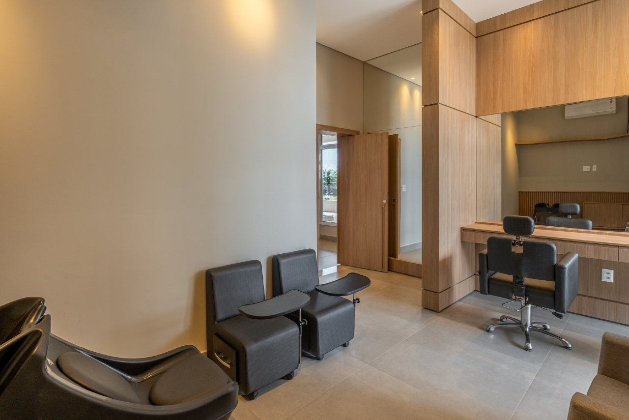 A infraestrutura completa do empreendimento inclui áreas comuns cuidadosamente planejadas, como um elegante hall de entrada, espaço gourmet, salão de festas, academia equipada, piscina e áreas verdes para lazer e convivência.